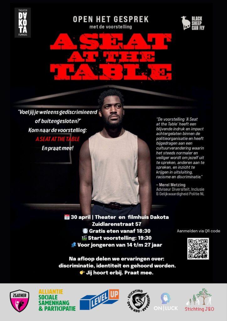 A Seat at the Table is een pijnlijk, actueel, confronterend en ontroerend verhaal gebaseerd op eigen ervaringen met alledaags racisme en uitsluiting. Ervaringen soms zo absurd dat het lachwekkend is.